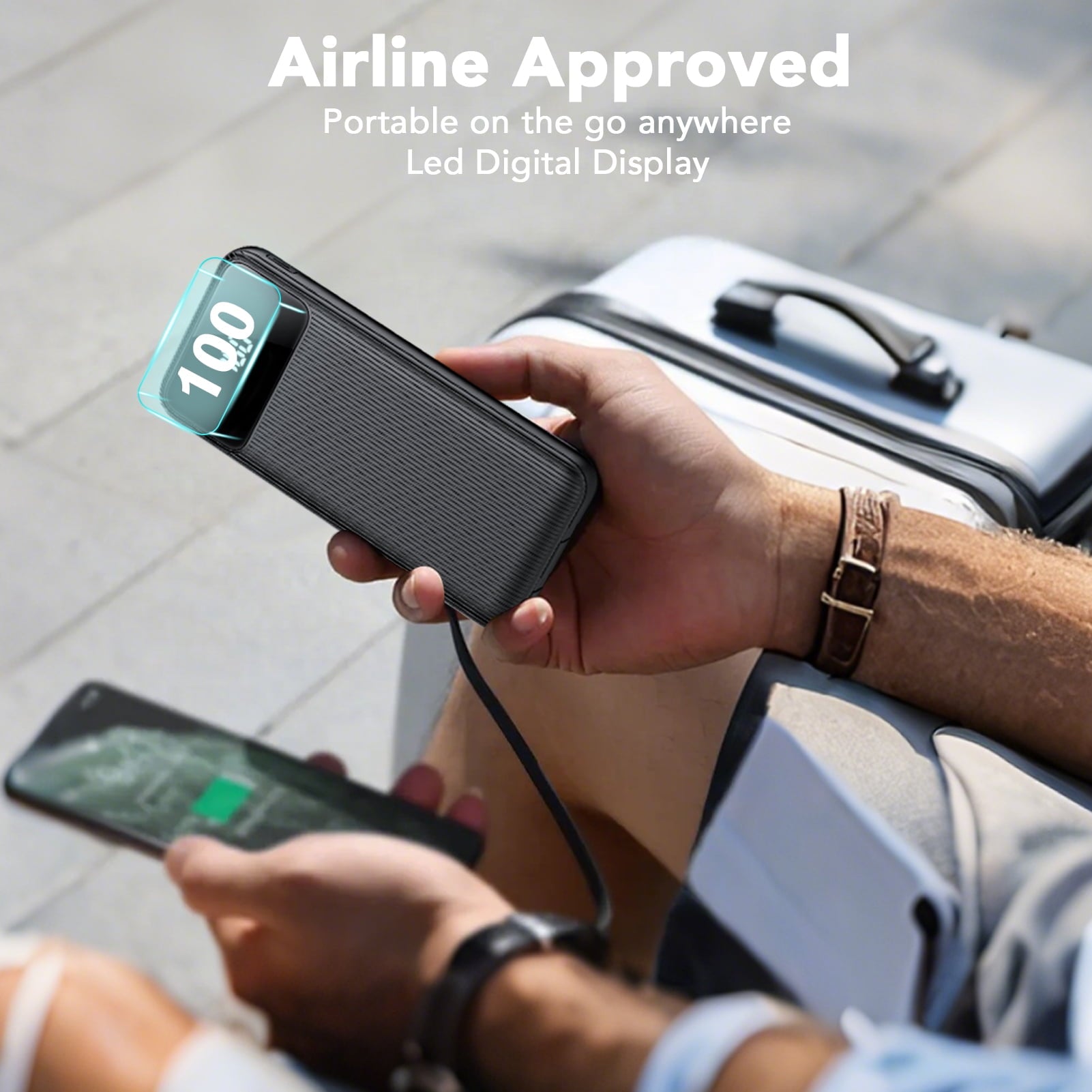 10,000mAh Portable Charger with Built-in Cables,22.5W Fast Portable Charger Power Bank with USB-C, Battery Pack with LED Display Compatible with iPhone and Android Phone,Hiking,Travel Essentials