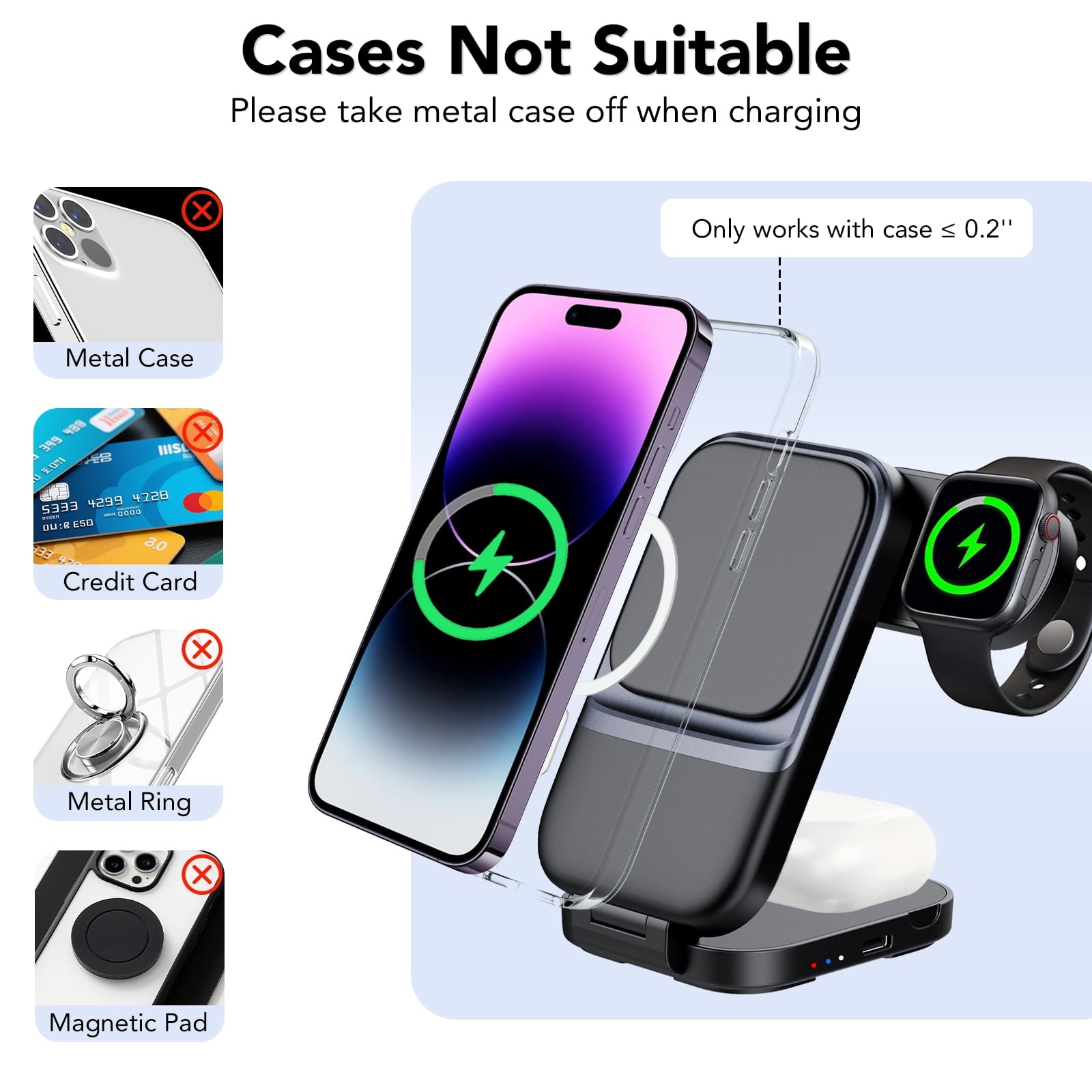 - Highly Compatible: Perfect 3 in 1 charging dock for Apple , Compatible with iPhone 16e/16/16 Plus/16Pro/16 Pro max15/15 Plus/15Pro/15 Pro max/14/14 Plus/14Pro/14 Pro max/13/13Pro/13Pro Max/13 mini/12/12Pro/12Pro Max/12 mini/11/11Pro/11Pro Max/XS/XR/XS MAX/X/8/ 8Plus & Apple iWatch 10/9/8/7/6/5/4/3/2/SE/Ultra 1/2 & AirPods Pro2/Pro/4/3/2(Note:Airpods Only Support Mag-Safe Charging Case)