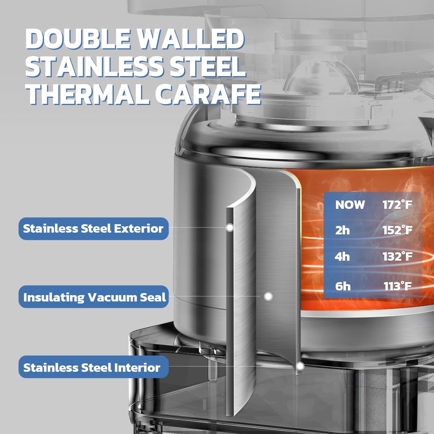 - 【8-Cup Vacuum-Insulated Carafe】Premium stainless steel thermal carafe maintains optimal coffee temperature for hours without burning, preserving flavor from first cup to last.
