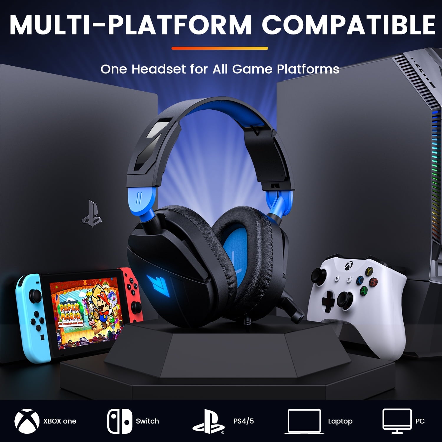 - Great Wide Compatibility: Aptkdoe gaming headset with a 3.5mm audio jack supports PS4 PS5 controller, Xbox One S, PC, Nintendo Switch , Nintendo New 3ds , Nintendo 3ds, Android device, Laptop, Computer, psp, mobile phone. These are pc gaming headsets you've been looking for. Note: You need an extra Microsoft Adapter (Not Included) when connect with an old version Xbox One controller. The USB port is for LED lights only.
