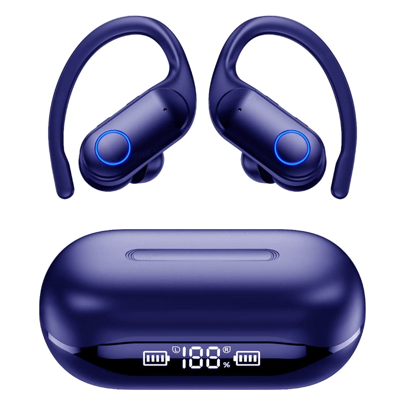 Bluetooth Headphones 5.3, Over-Ear Headphones Built-in 4 ENC Mics, 60Hrs Playtime Wireless Earbuds, Bass Boost 85%, IPX7 Waterproof Ear Buds with Earhook for Exercise Running Sports Blue