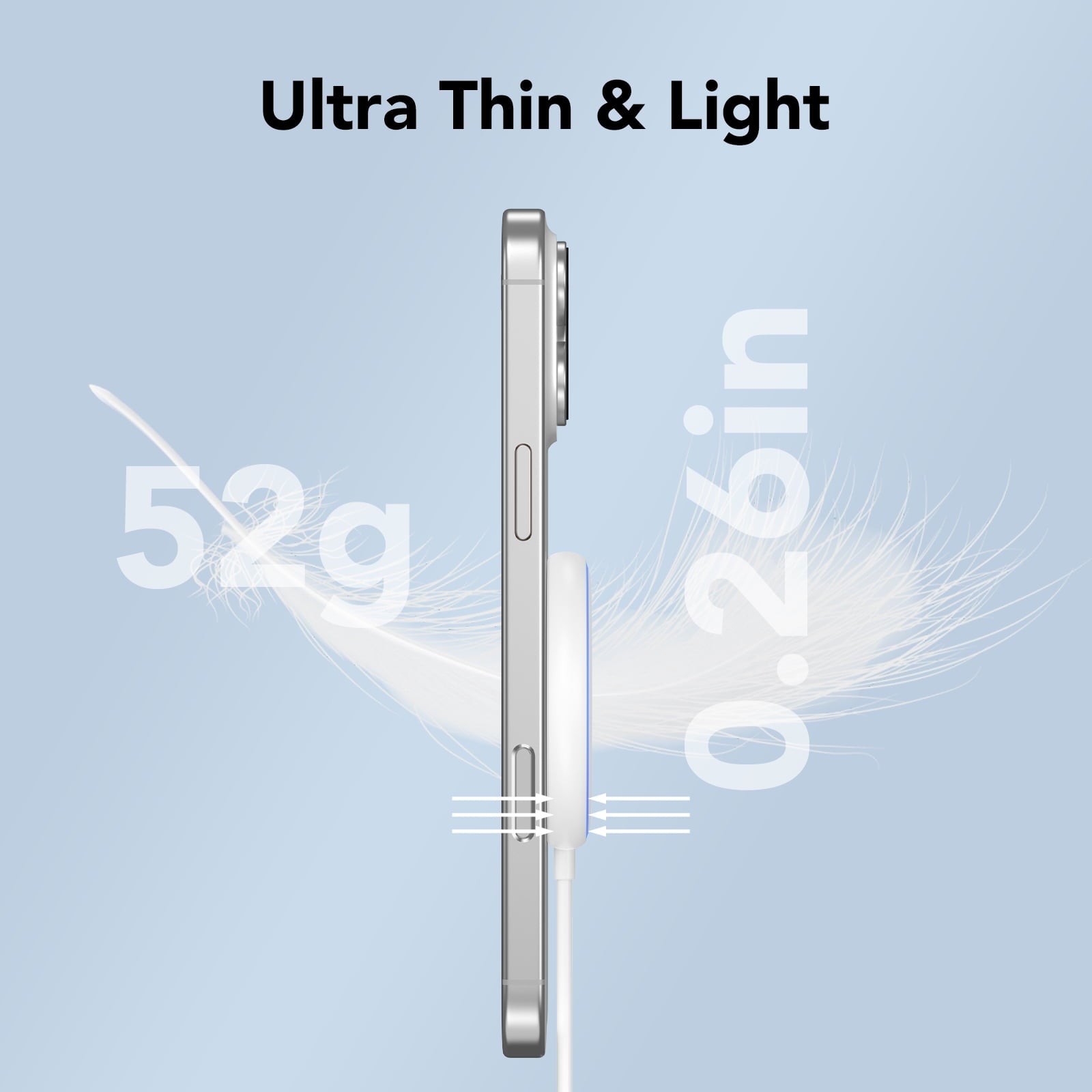 - Strong magnetism, safe and stable charging: Equipped with advanced magnetic array, the charger automatically aligns to the best charging position and holds your iPhone firmly in place.