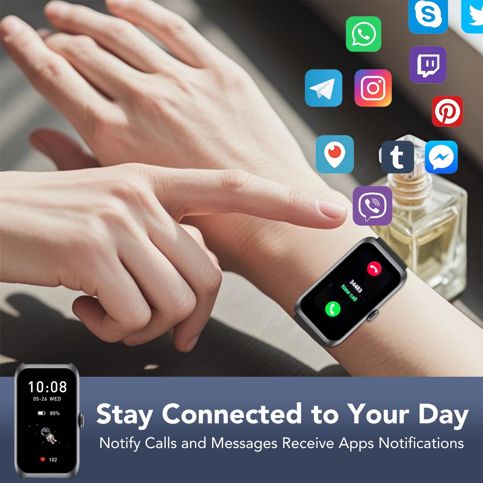 - iOS & Android Compatibility: Sync effortlessly with iPhone and Android phones (iOS 9.0+/Android 9.0+), receive notifications for calls, texts, and apps.