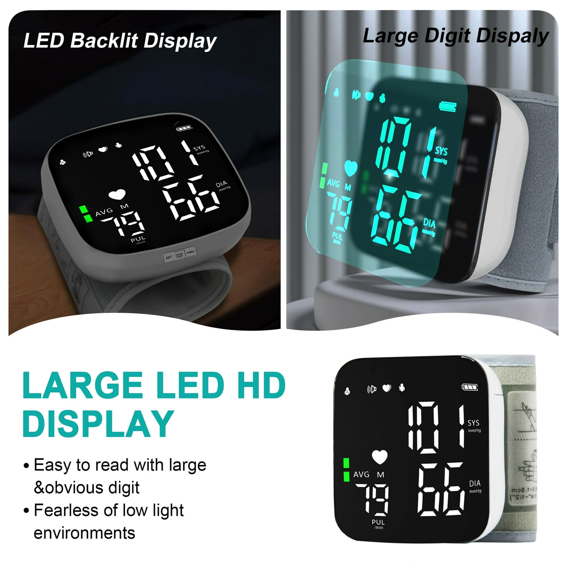 - ✅【Large LED HD Display】The blood pressure monitor with large LED HD display is very suitable for elderly people with poor eyesight even in low-light conditions.