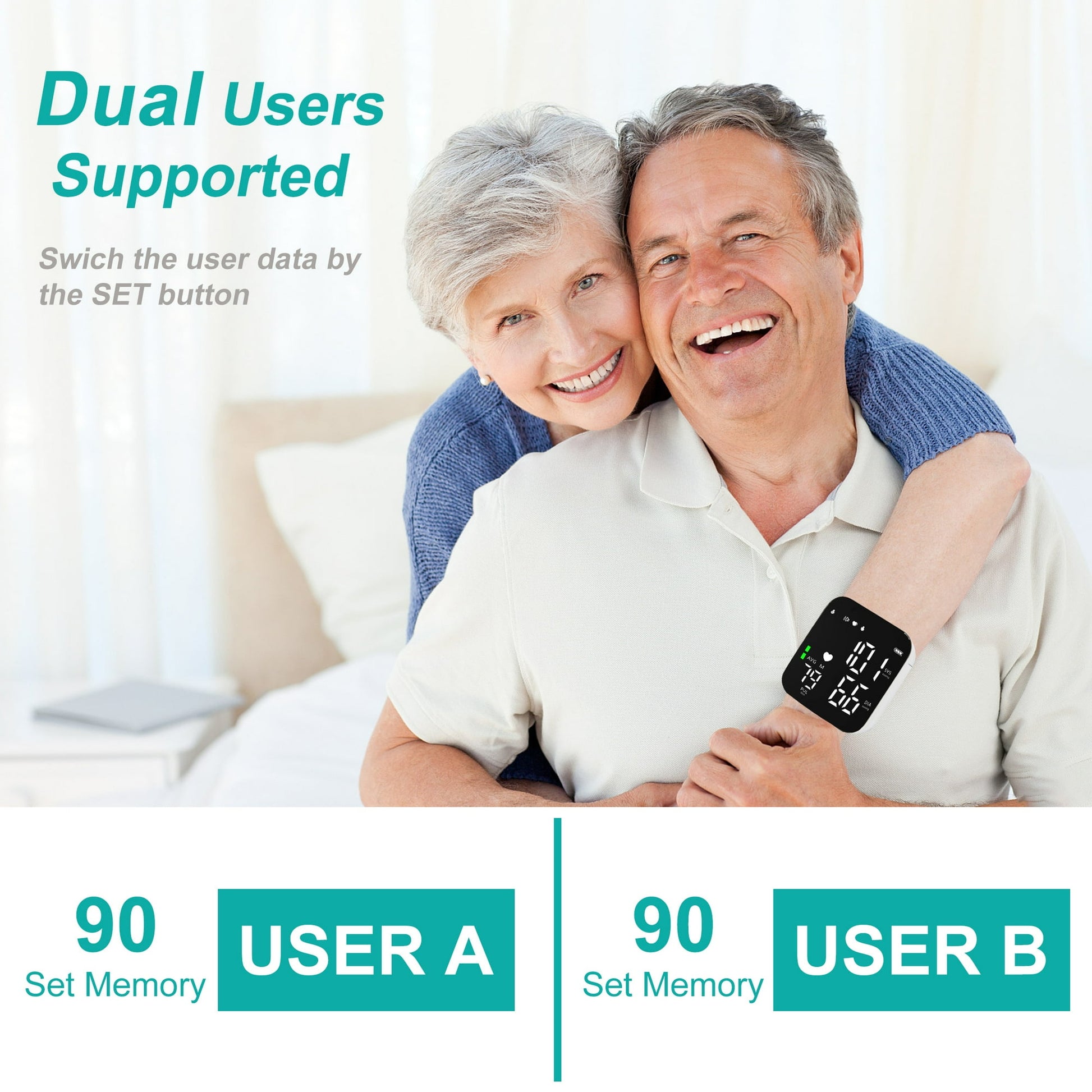 - ✅ 【Convenient Dual User Mode】This blood pressure monitor allows you to track health trends for 2 users with 90 recordings each. Perfect for couples or caregivers managing multiple sets of data.