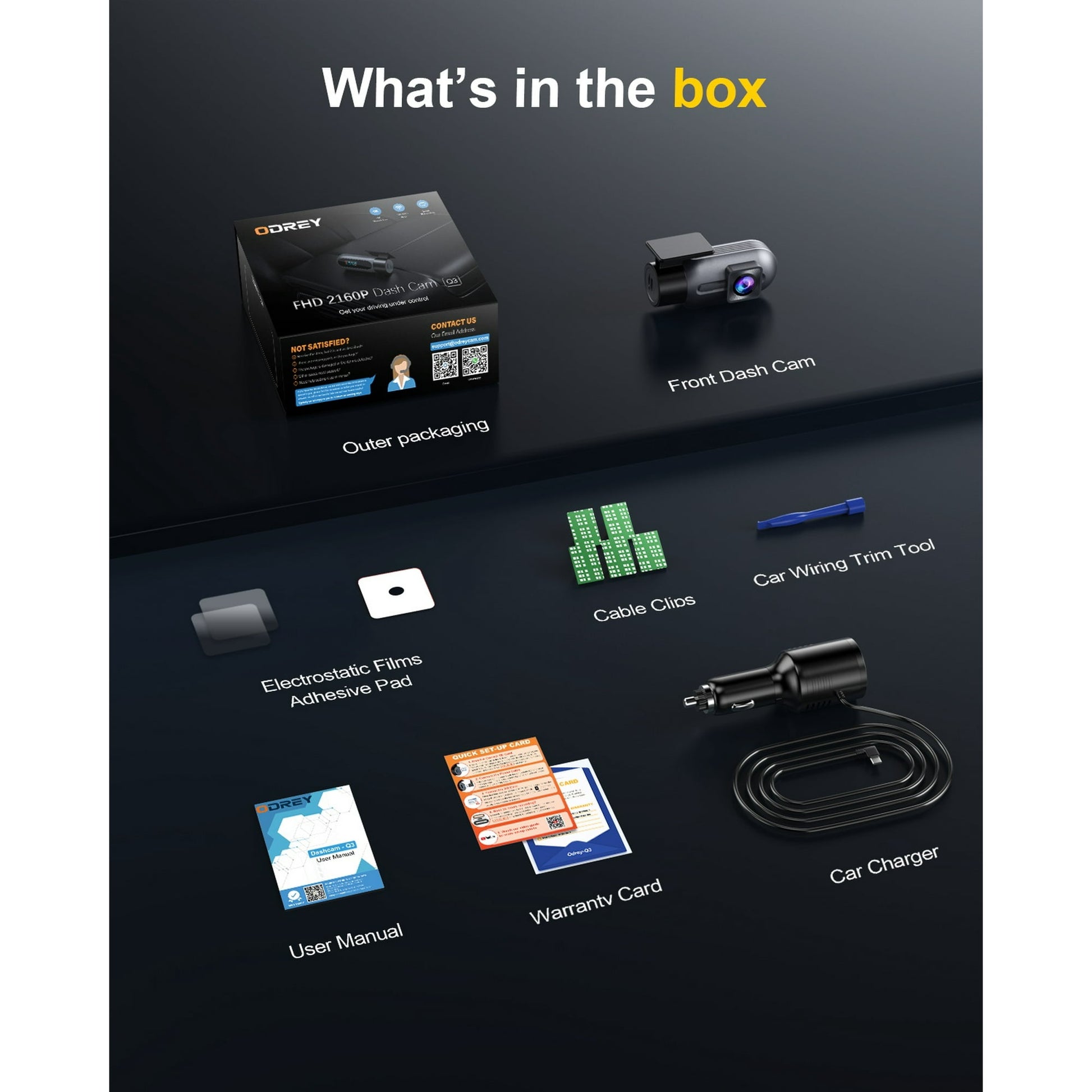 - 【4K UHD Video Front Dash Cam】Odrey Q3 dash cam is newly upgraded. This single-channel dash cam is equipped with advanced GC CMOS and 6 lens. The 170° wide angle can reduce the blind spot of recording in all aspects. Advanced WDR and Night Vision functions ensure that the information of the vehicle in front can be clearly recorded at night or during the day.
