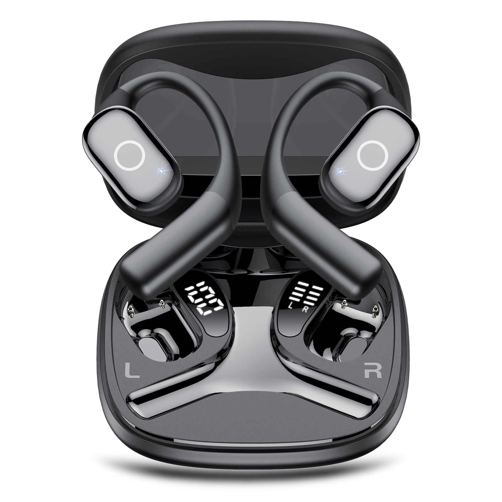 Open Ear Headphones, Bluetooth 5.4 Earphones Stereo Sound, Wireless Headphones 30 Hours Playback, Type-C Charging, Clear Calls, Waterproof Open Ear Earbuds,Black