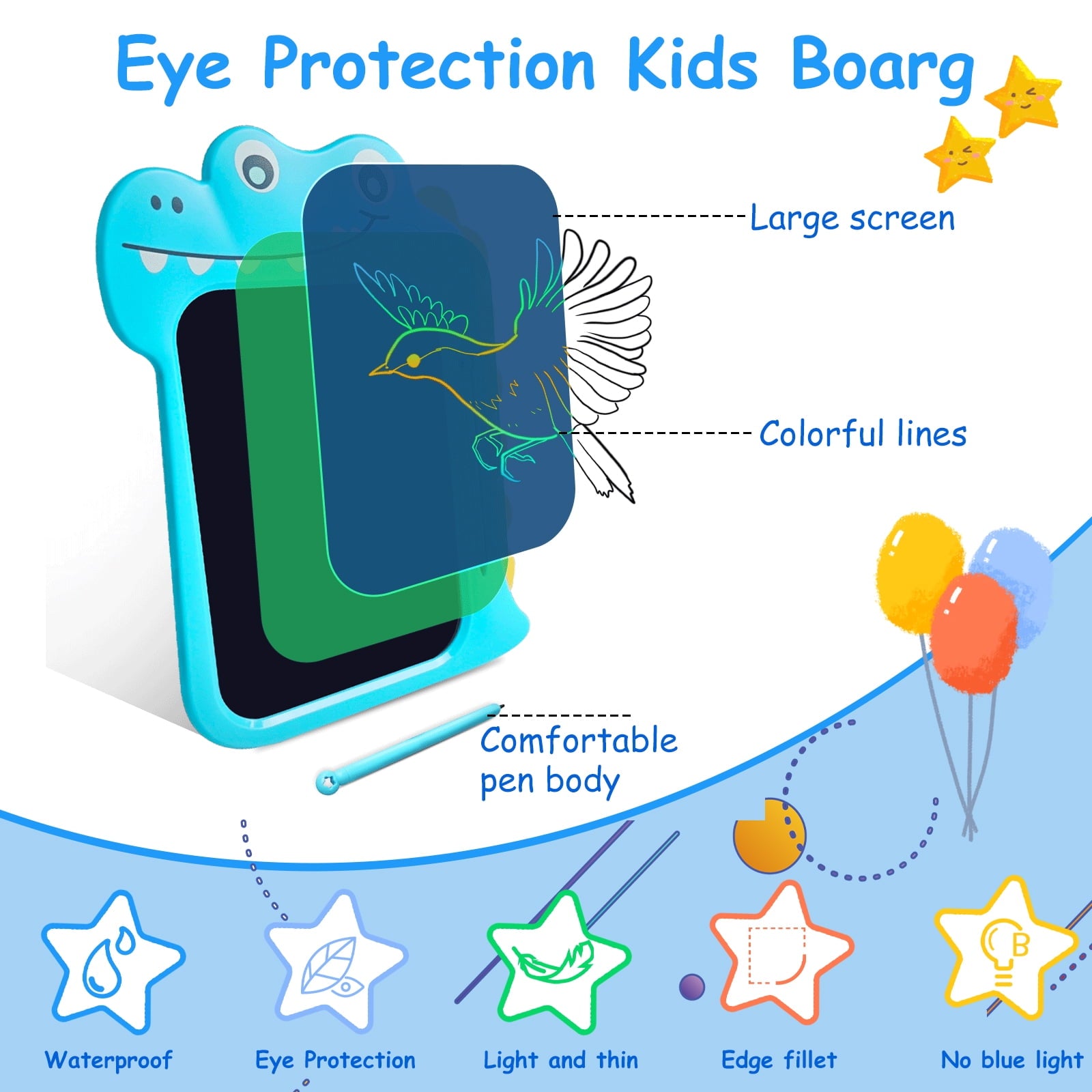 - 【Eye-Protection Color Screen】Crafted with a low-energy, eye-protective LCD screen (no blue light/backlight!), this writing tablet for kids ensures safety. Made of durable, BPA-free ABS with rounded edges, it’s the trusted Kids Toys parents love.