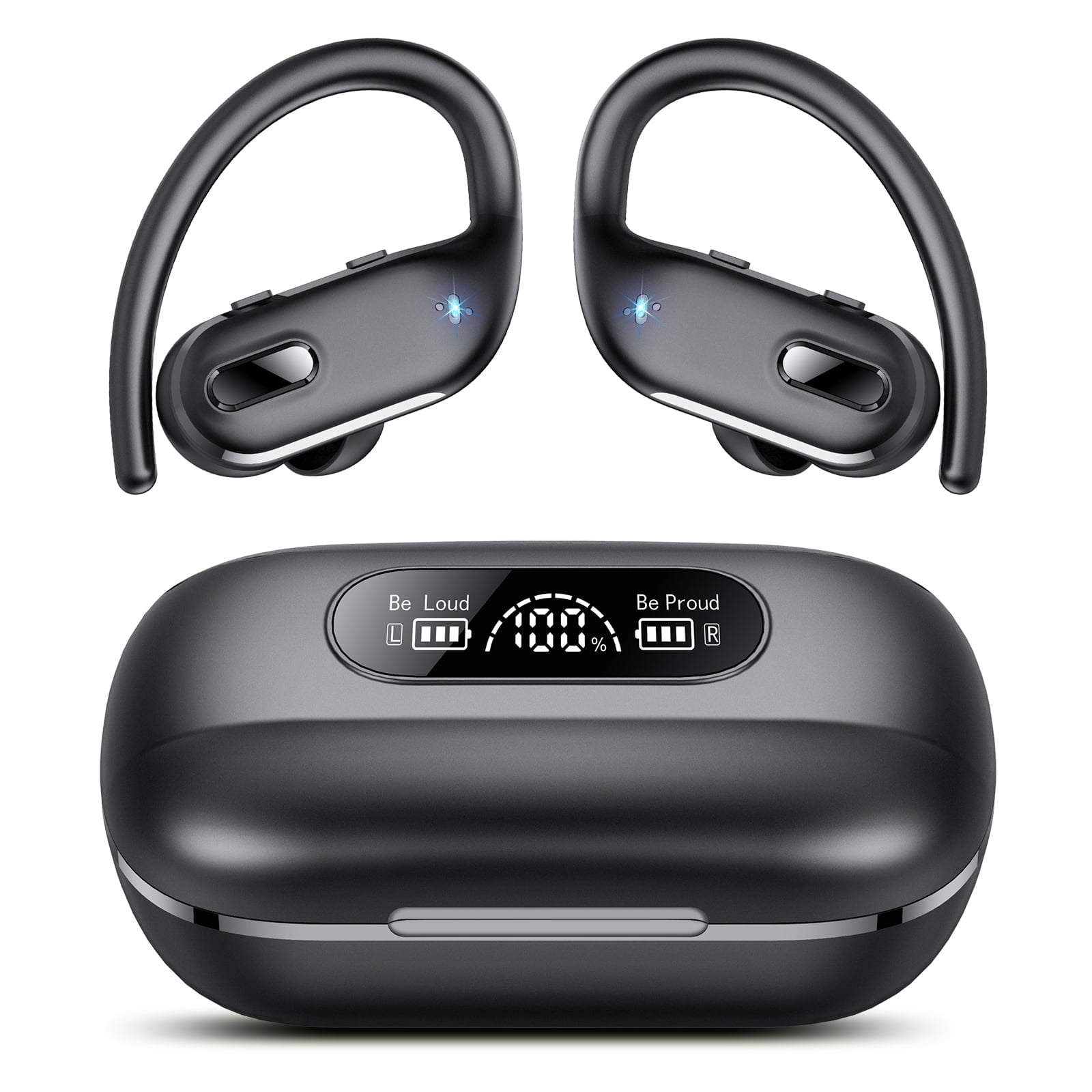 - Comfort for Sports & IPX7 Sweat-Resistant: Our wireless headphones are engineered for ultimate comfort during extended workout sessions, featuring flexible and soft ear hooks that securely stay in place.3 available sizes of ear tips achive a customized comfort,ensuring a perfect fit for large and small ears during your exercise routine.The sports earbuds with an IPX7 waterproof rating,making the mini wireless true earbuds resistant to water splashes and sweat,ideal for fitness,jog,running.