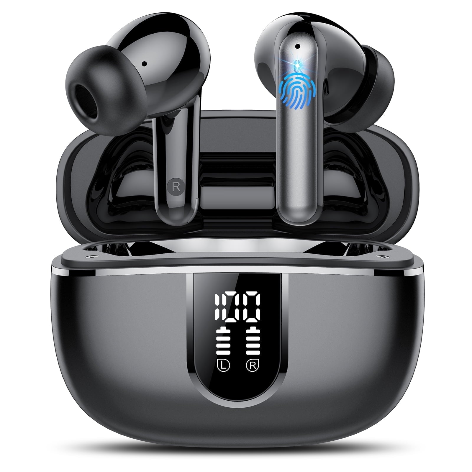 Wireless Earbuds, Bluetooth Headphones 5.4, Bass Boost 85%, 50Hrs Playtime Bluetooth Earbuds with 4 ENC Call Noise Cancelling Mics, IP7 Waterproof Sports Ear buds for Android iOS Black