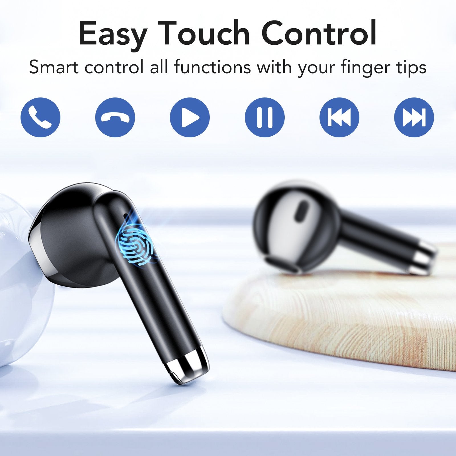 - The touch control is on the side of the earbuds pole, and the unique touch control greatly reduces the probability of you touching the earphone by mistake. And easily control volume, up and down songs, pause/play, answer/reject calls, and call Assistant.
