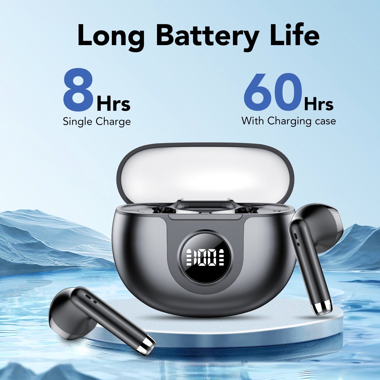 Wireless Earbuds Bluetooth V5.3 Headphones 60H Playback Deep Bass Stereo Ear Buds with LED Power Display Charging Case IPX7 Waterproof Earphones with Mic Headset for Laptop Pad Android/iOS Phones